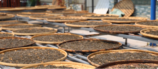 Raw Pu-erh is made from large-leaf tea varieties grown in Yunnan. The fresh leaves undergo processes such as pan-firing (kill-green), rolling, shaping, and sun-drying to produce what’s known as “Maocha” (rough tea). This Maocha is then pressed into various shapes like cakes, bricks, tuo (nest), pearls, or squares. As a non-fermented tea, raw Pu-erh retains a fresh, astringent character that ages and transforms over time.